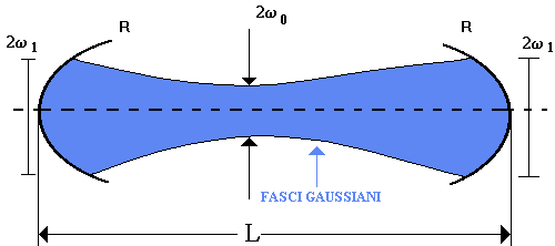 Il risuonatore ottico può oscillare su molti "modi" diversi.Si distinguono modi assiali (longitudinali) e non assiali o spaziali (trasversali).Nei modi trasversali la fase dell'onda non è più omogenea su tutta la superficie dello specchio e si ha la formazione di più fasci di raggi all'interno del raggio laser (fascia tra 2w1 e 2w0). L'oscillatore ottico influenza inoltre il comportamento "riflettente" del raggio laser; affinchè tale raggio possa fuoriuscire dalla cavità per passare nello spazio libero, uno dei due specchi viene reso infatti leggermente permeabile alle rispondenti lunghezze d'onda.In questo modo, solo quei raggi che vengono riflessi in modo perfettamente parallelo (linea tratteggiata) lasciano il laser sotto forma di luce coerente.